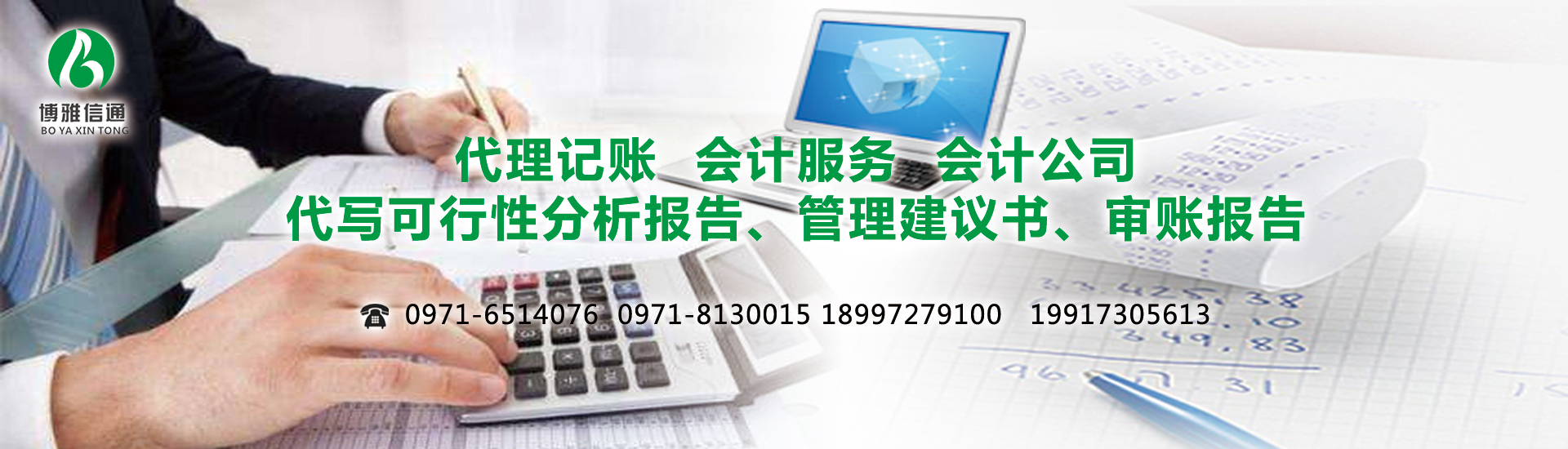北京博雅信通會計服務有限公司西寧分公司為各中小企業(yè)提供各種專業(yè)工商財稅會計服務。包括公司設立籌劃、公司注冊、執(zhí)照變更、代辦注銷、代理記賬報稅、亂賬整理、會計實操培訓、會計職稱培訓(會計取證培訓)等一站式服務體系,誠信、專業(yè)、高效、省心! 公司簡介: 北京博雅信通會計服務有限公司西寧分公司 成立于2003年,積累了幾十個行業(yè)工商財稅會計服務經(jīng)驗,主要提供公司注冊、執(zhí)照變更、企業(yè)注銷、工商年報、代理記賬、納稅申報、會計培訓、財稅顧問等一系列服務。全程工商財稅老板們甩手我們代理,并且用足用好工商財稅優(yōu)惠政策,讓企業(yè)老板省心、省時、省事兒!節(jié)約會計核算和納稅成本,解放您的寶貴時間抓好企業(yè)經(jīng)營,做您的...